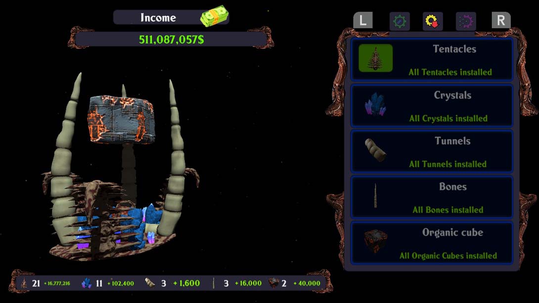 增加你的收入购买新的元素的有机引擎,如骨骼,晶体和隧道。