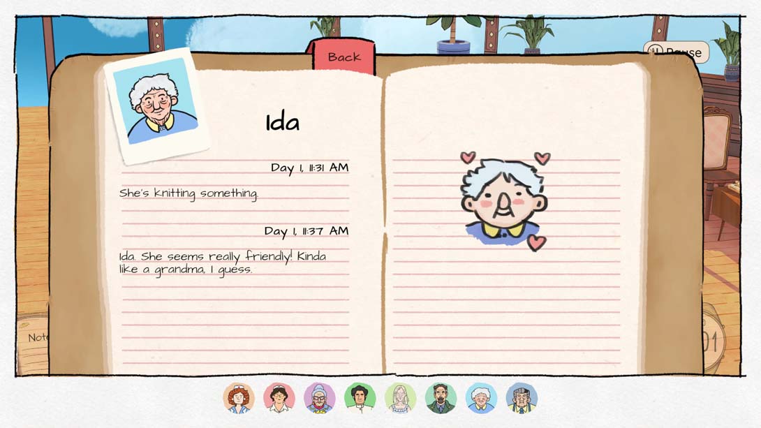 在《Wayward Strand》的世界中,每个人的时间都在流逝——角色无需等待你与他们互动就能继续他们的生活。在《Wayward Strand》独特的叙事结构中,十多个角色的故事不断在你身边实时展开,而你作为Casey,每天都可以自由地漫游。