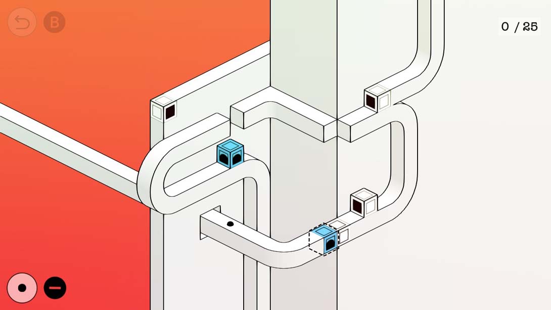 玩家与每个级别的不同拼图元素进行交互,移动和移动它们以创建通向目标的路径。游戏中的一切都简单而实用,