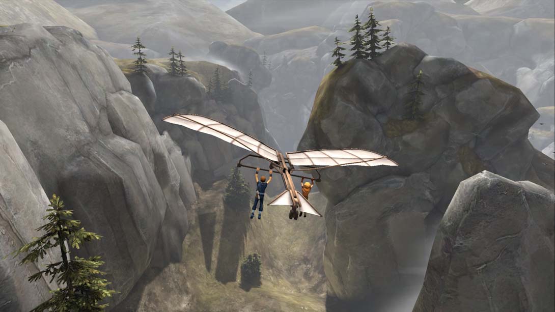 最为典型的一个例子是,当兄弟二人随意坐在长椅上时,玩家的视角从俯视退到主角背后,这时阳光从峡谷与薄云间倾泻而出,并在密林与岩石间投出几道金黄色的斜路,冒险的意味就体现出来了。