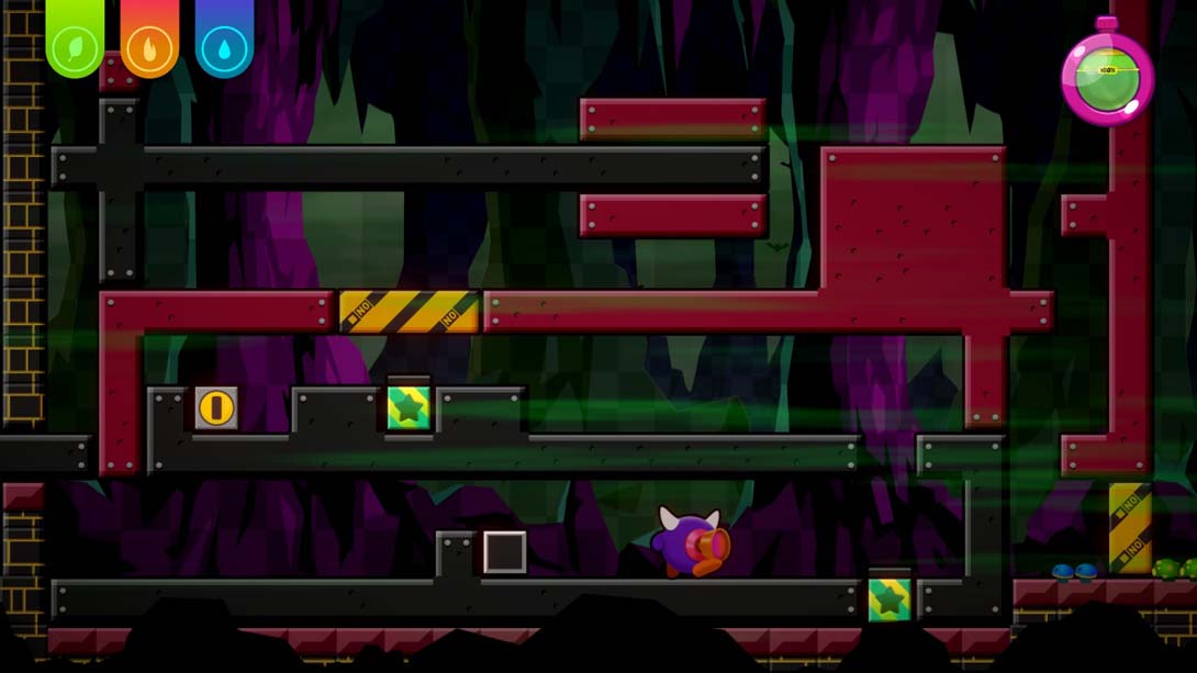 但这仅仅是个开始。当注入水平、垂直或对角线三种运动力量之一时,一些特殊的块可以成为一个移动平台。Xan可以从已经移动的另一个块或电源中获得这些能量。