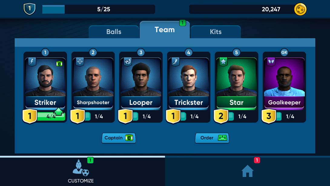 自定义和增强您的团队与数量可解锁的玩家升级。克服挑战,欺骗对手,赚取硬币,并通过射击目标或任意球代表你的球队的颜色。