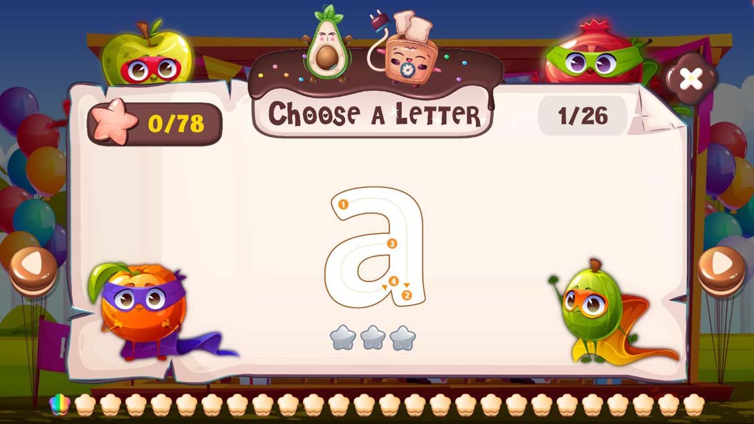 学前儿童的教育游戏,将发展他们的运动技能,并向他们介绍在儿童友好的设计中书写字母和数字的基础知识。