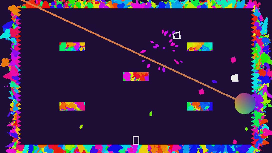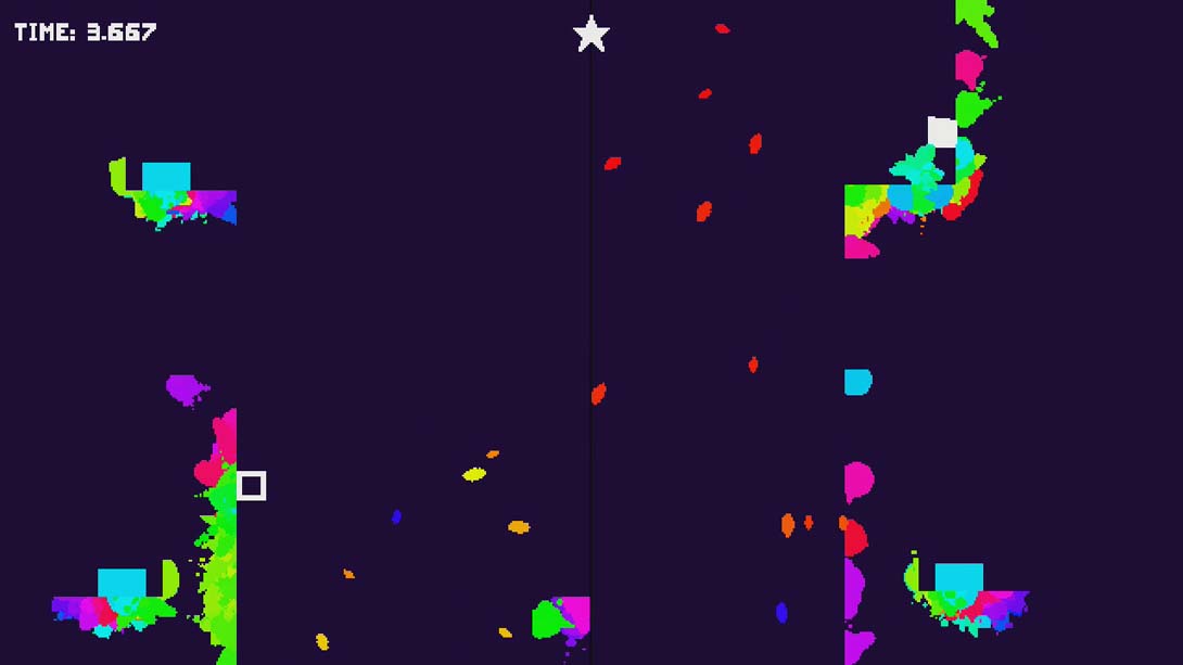 玩家可以通过各种方式呈现关卡:两次跳跃,墙壁滑动或压扁敌人,这些都会创造出飞溅和污迹。即使失败也是有用的-当你的块状角色死亡时,它会爆炸出大量的颜色,画出周围的区域,为你的下一次尝试揭示更多的关卡!