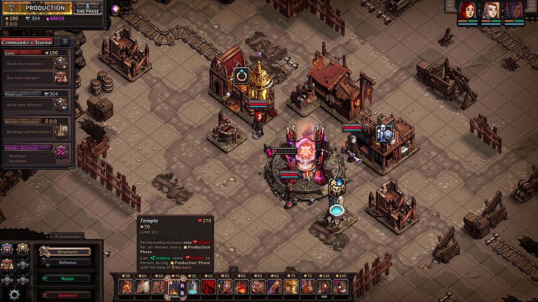 肉鸽,战棋,经营,塔防四合一,每个元素都能兼顾到,对于手残休闲类玩家比较友好。初期简单模式全部勾选,攒点污秽精华,僵尸开饭两次后,就可以简单通关了。然后简单天启,普通难度,普通天启。经营下来,建造先金矿,房屋(加工人),预言台后制甲坊,弓箭坊,魔法工坊,铁匠。尽量早点满级,每天自动生产一个高等级装备,再工人生产一个。基本第四夜第五夜就可以起飞。塔防投石车,传送阵,弩箭塔,陷阱都可以,看个人喜欢,箭塔比较好,适合长弓手蹲点输出。人员build目前玩下来高暴击,多次连续射击远程最爽,手弩一次火焰射击七连击,每次蔓延七次。高暴击高伤害再加技能范围的远程,装备长弓短弓,站箭塔上输出,伤害高范围大,还可以帮其他方向补漏。高法伤高蔓延法师群伤厉害,单体怪差一点。近战手短,易死,但是帅