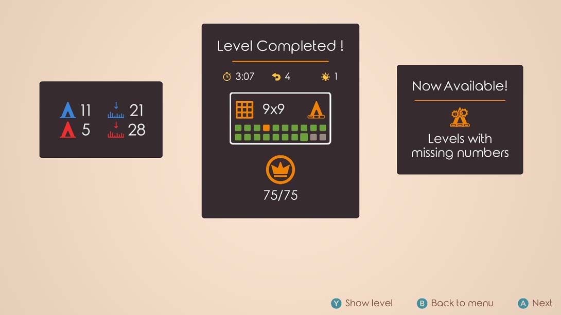 你的任务很简单:把帐篷放在充满自然的网格中的树旁。网格周围的数字告诉你每一行和每列必须放置多少帐篷,但要小心:帐篷不能相互接触。每个关卡只有一个独特的解决方案,所以花点时间仔细计划你的每一步。