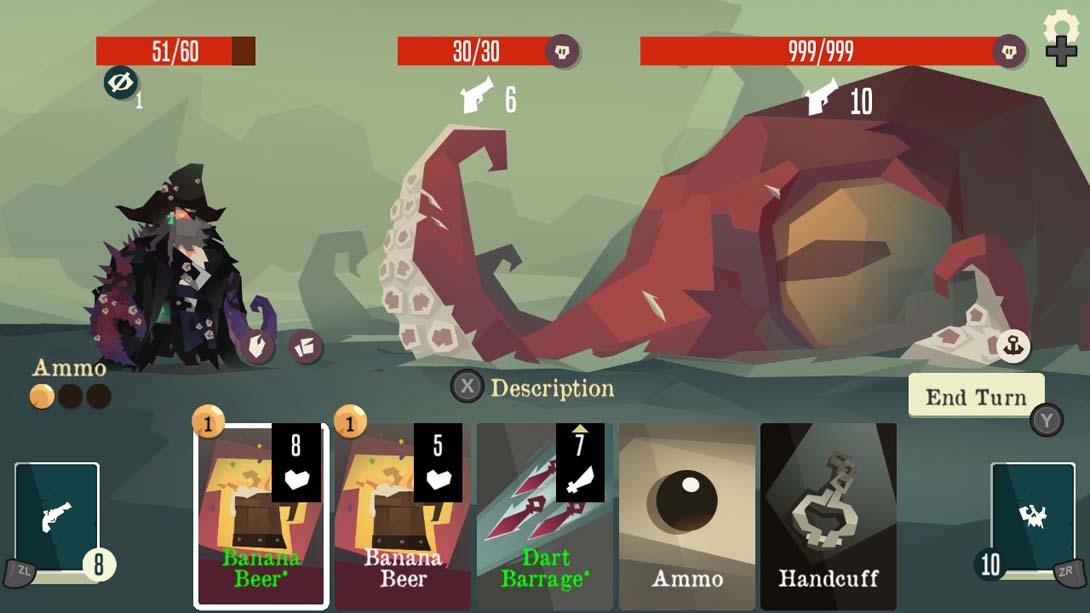 在导航模式中开始一场roguelike探险!在不同的视野中选择不同的路线,与站在你道路上的每一个海盗和歹徒战斗。在你的牌组中添加新卡或升级它们并获得遗物以在旅途中幸存下来!当你玩你会赢得声誉解锁新的地图,卡牌和更多!当你达到9.999声誉,你将解锁与更强大的敌人和独特的挑战的困难模式。