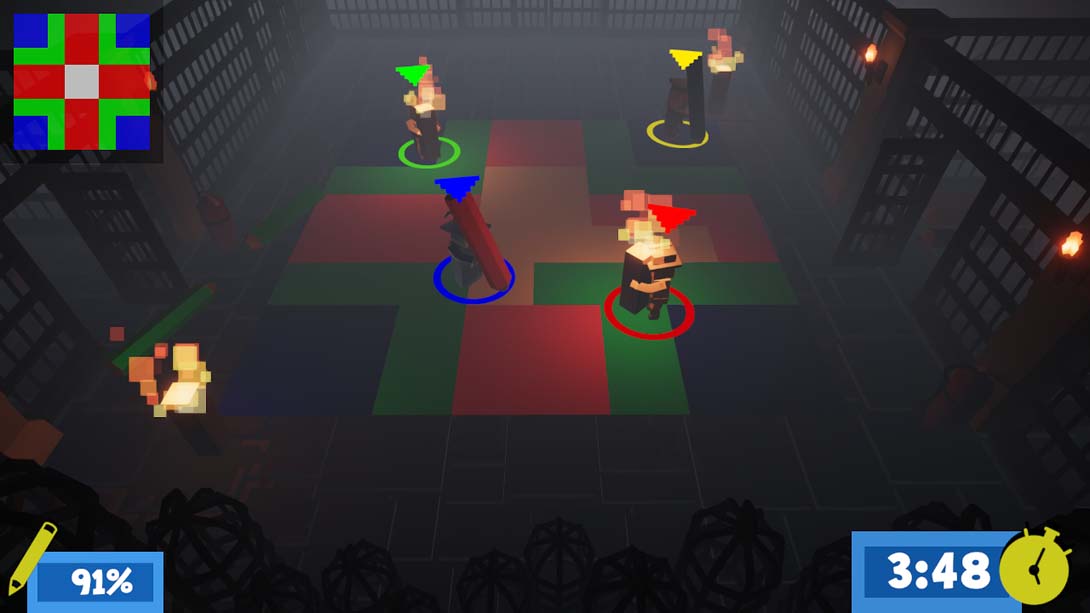对战模式,可以在专用的战斗舞台上与其他玩家竞争。在舞台上跑来跑去,展示彩绘技巧吧!有时,比起油漆,妨碍对方更重要!