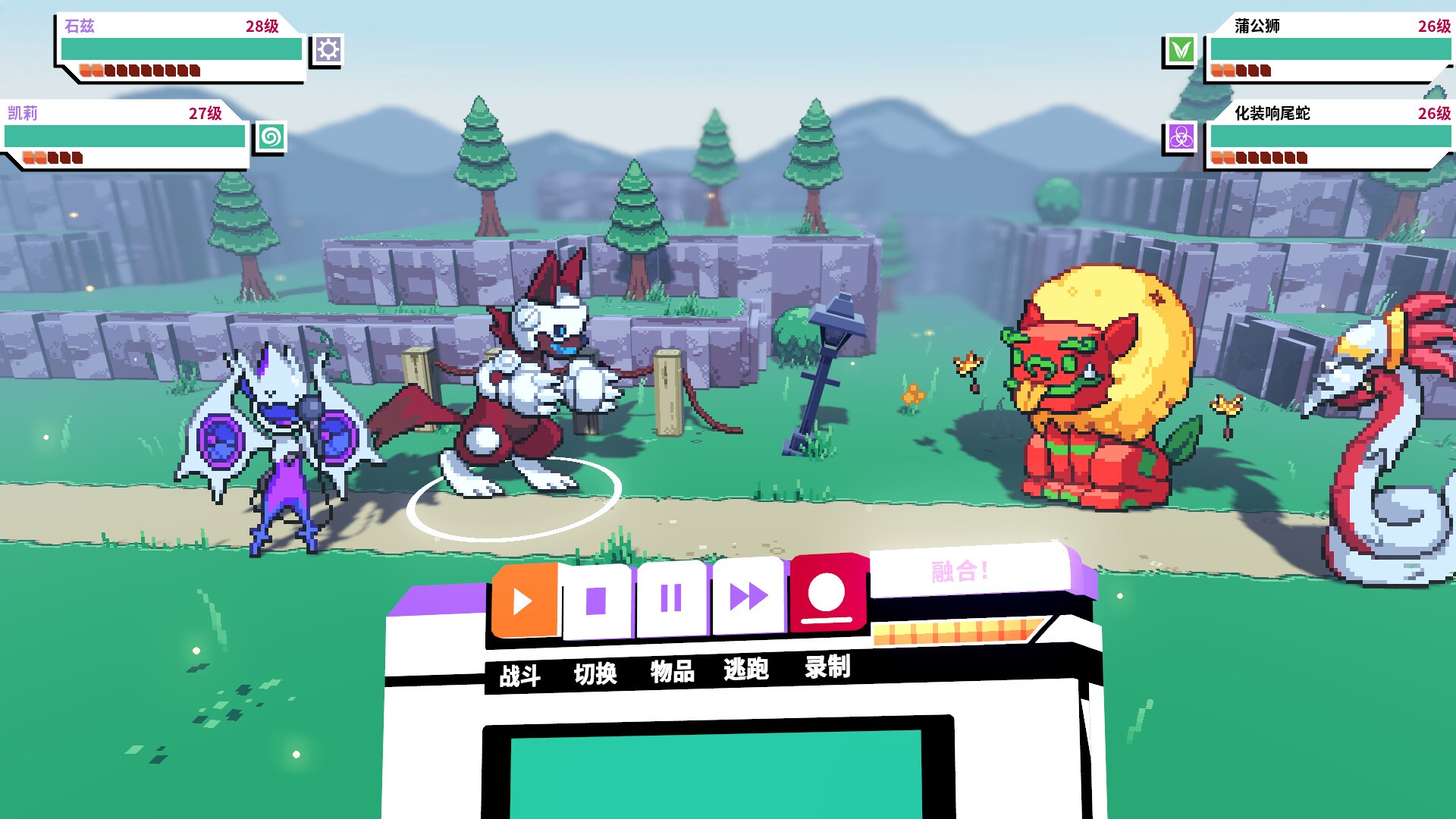 融合怪物形态。靠近你的同伴是有好处的——当你变身的时候,你可以结合你的力量在战斗中占据上风!任何两个怪物形态都可以融合,产生独特的、完全动画的新融合形态。