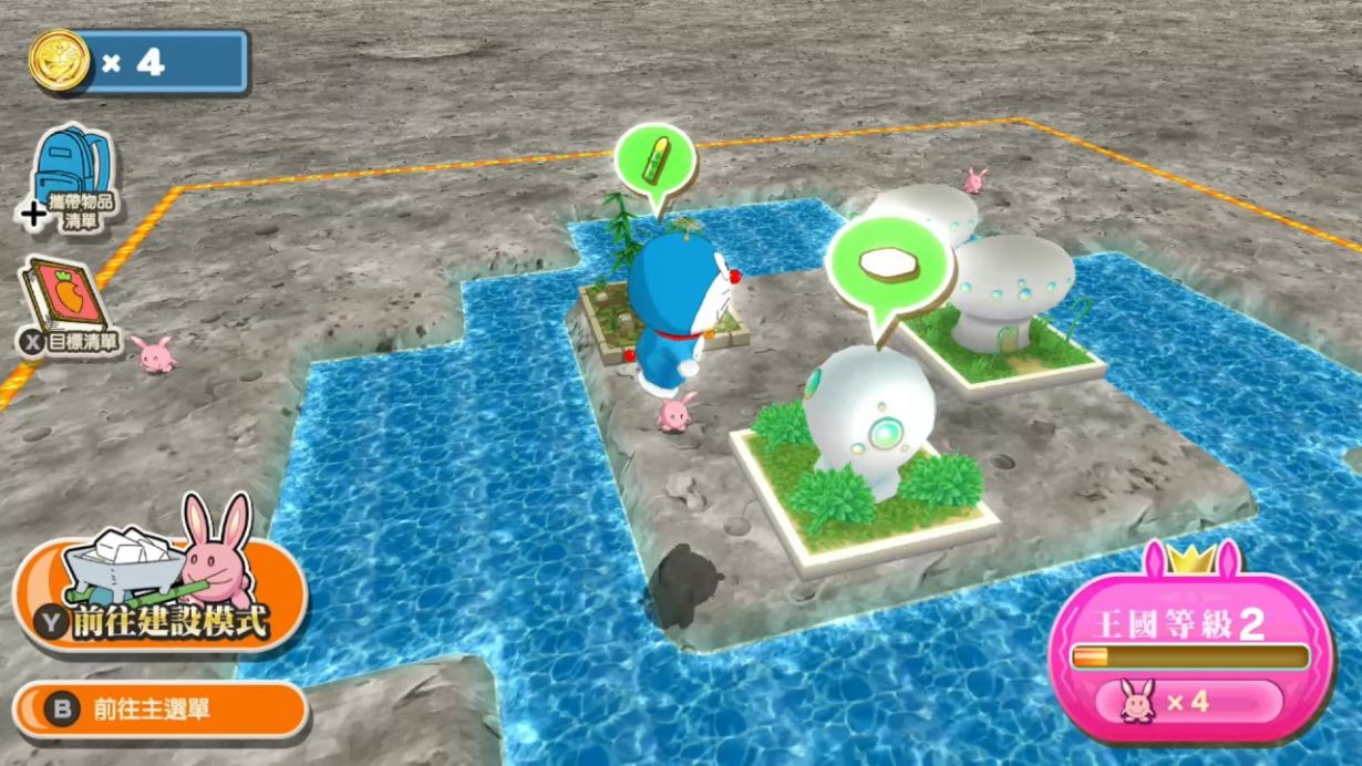 能够以不同感觉在游戏里观赏某天出现的不可思议的少年琉华和哆啦A梦一行人一起前往月兔王国,在那经历的感动与冒险的剧场版故事。并且充满了透过探索冒险地图获得道具、建设只属于自己的月兔王国等的各种冒险元素。