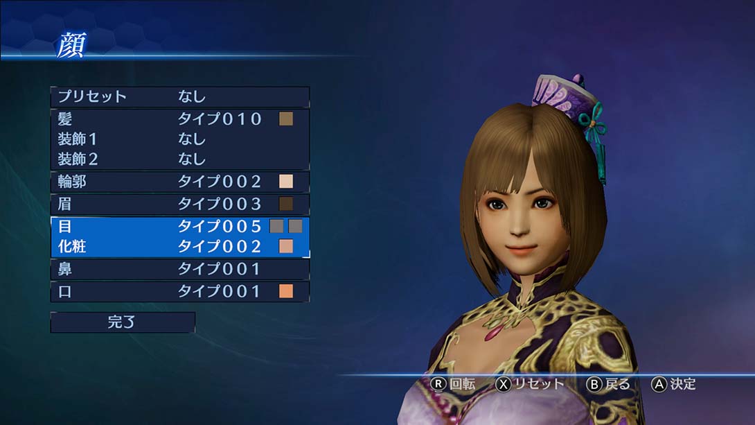 《真三国无双》系列熟悉的编辑系统更为进化,追加能个别编辑轮廓、皱纹、胡须等要素的功能,以及新防具配件与配色变化等,大幅强化武将编辑功能。此外,还追加能按照结为连理的武将外表来自动产生子女相貌的功能。不仅如此,军队的军马、军旗、军团等都能加以编辑,打造自己的三国世界。