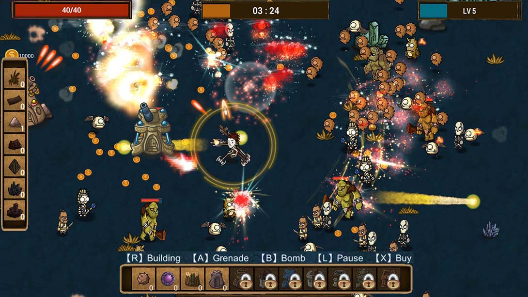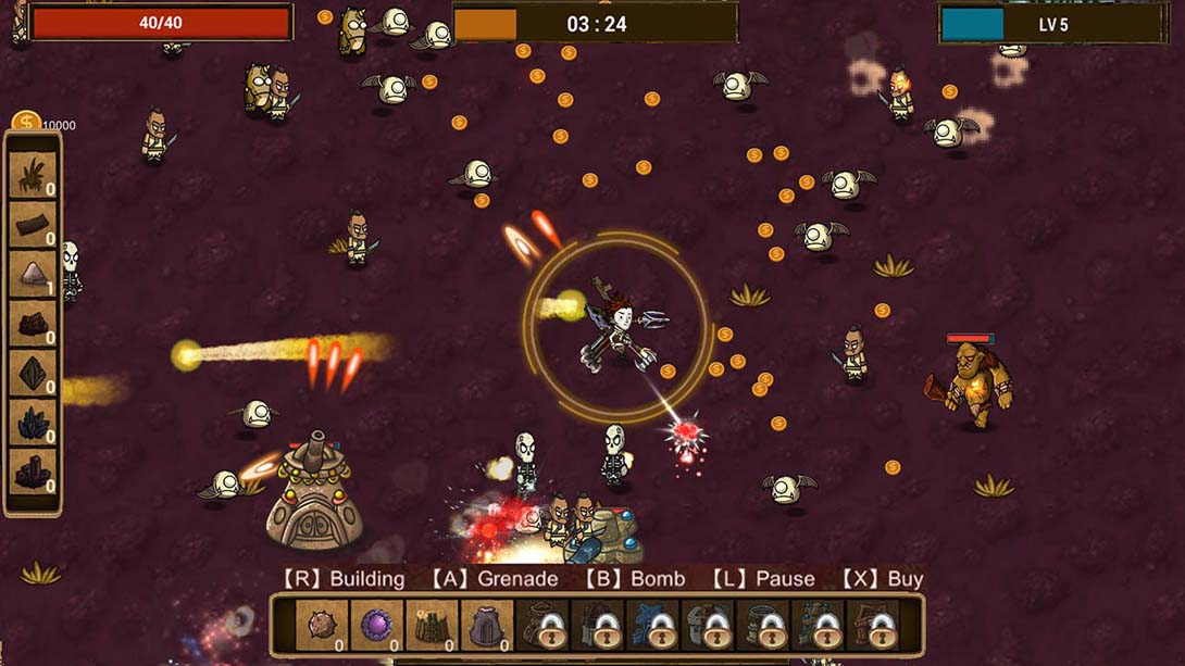 在荒野中,你可以使用不同的武器,与来自四面八方的无数怪物战斗,不断收集材料和金币,购买不同的武器、装备、法术,堆叠不同功能的buff,让自己变得越来越强大,从而击败潮水般涌来的怪物。收集不同的材料,制造手榴弹和炸弹,建造自己的炮塔,并通过不断加强炮塔来形成一个不可战胜的位置。当你变得更强大,有一个最后的摊牌与敌人的老板!