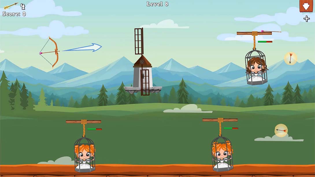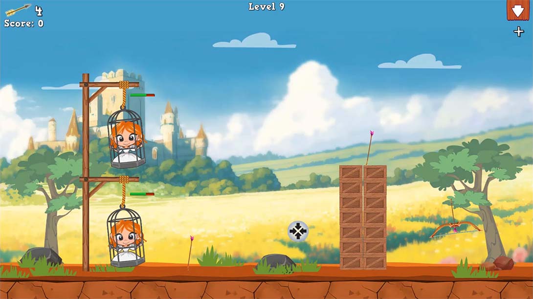 公主有危险!亚契,射断绳子,救公主!展示你的准确性技能和完成真正的物理难题!