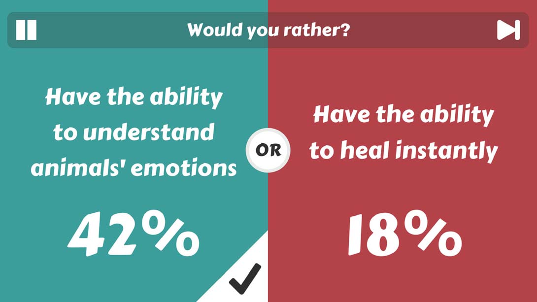 当你看到每次投票的百分比变化时,见证民主的真正力量。想知道有多少人会选择传送到任何地方或者只进行一次时间旅行。深入研究统计数据,满足你的好奇心,让数字自己说话。