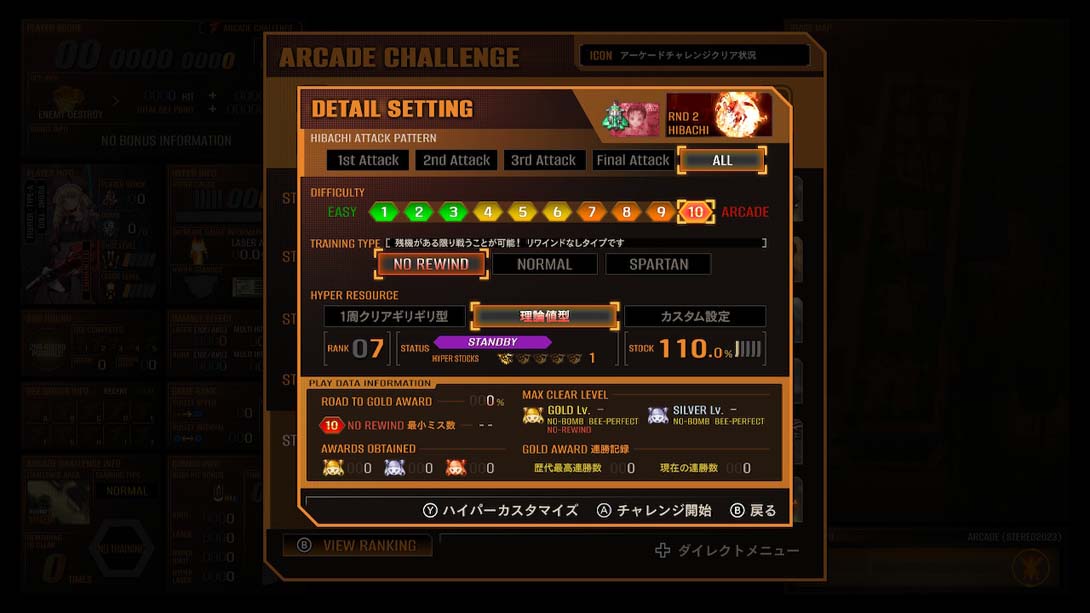 因为练习中的失误而可以反复练习的功能,在本作中除了失误以外,还追加了蜂道具获得和连击用的训练类型,不只是街机版的通关,而是以“通关的前方”为目标的玩家也完成了能对应的内容。
