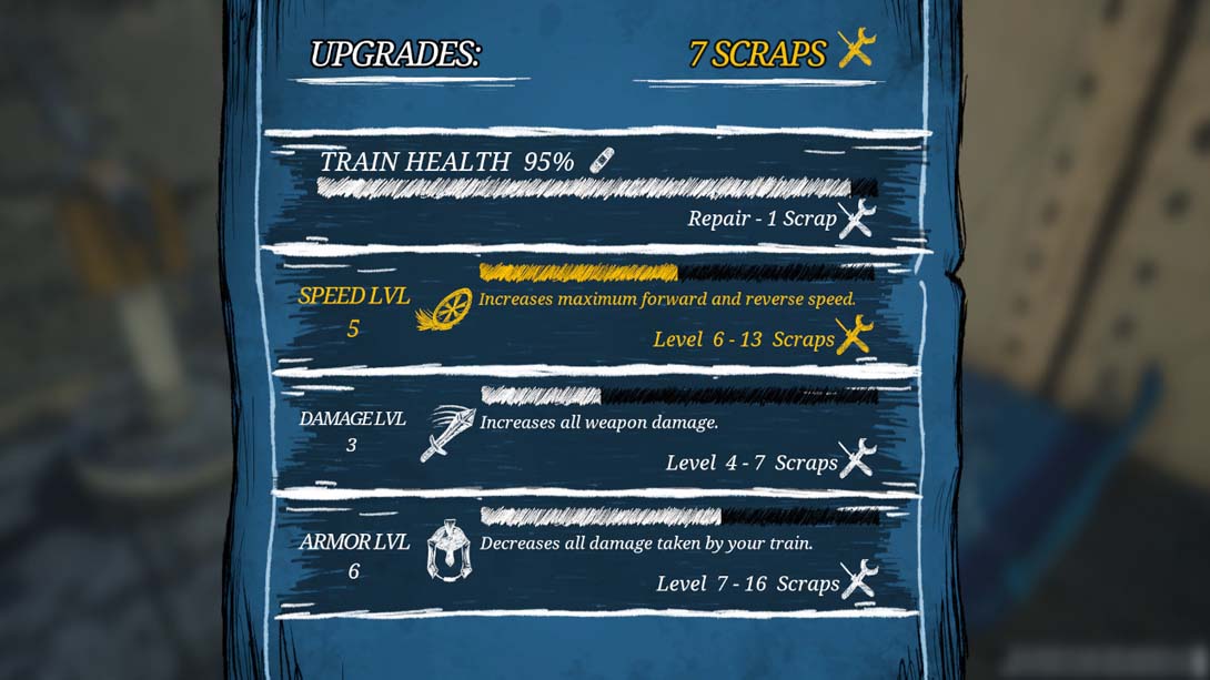 去抢劫或完成任务,找到“废料”,这可以用来把你的火车变成一个车轮上的死亡机器。