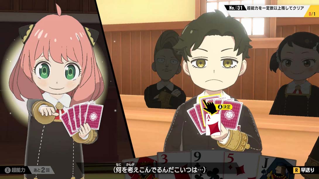 跟着节奏晚上特训,坐着邦德胡思乱想。如果使用阿尼亚的超能力的话还能读取对方的扑克牌!?