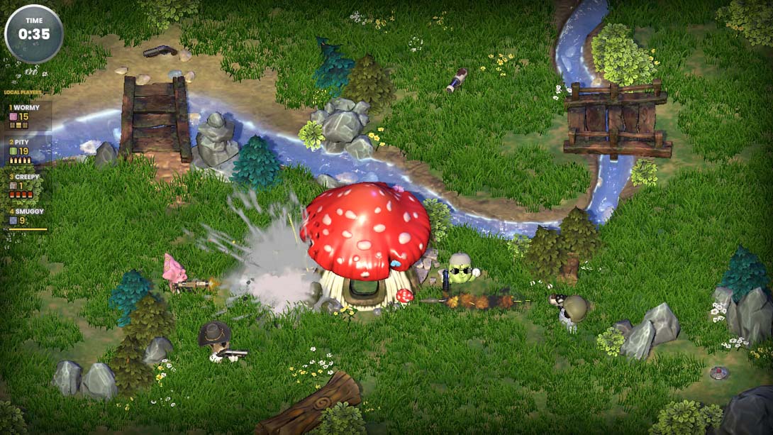 赌上生死的战斗。并没有那么严格。即使被淘汰一次,经过一段时间后也能复活,继续比赛。基本的武器只有5发子弹,重装需要时间。因此,推敲战略,得到在地图上随机出现的奖励武器是关键。游戏结束时,显示最活跃的玩家,以及各玩家的获得点。另外,根据活跃的等级,播放布拉内克的动画。