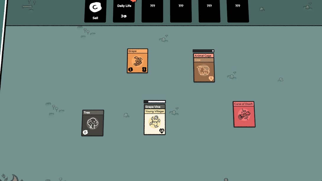 例如,在“Berry Bush”卡片上拖拽一张“村民”卡片将生成“Berry”卡片,村民可以吃掉这些卡片来生存!