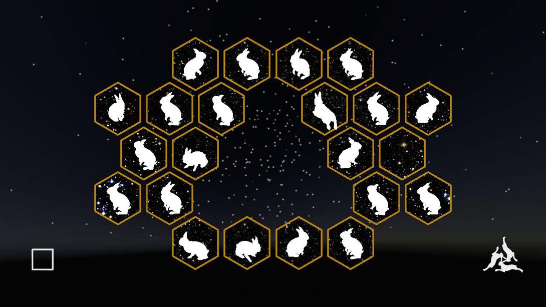 《Cosmic Hare》是一款基于经典棋盘游戏《Peg Solitaire》的休闲益智游戏:棋子可以通过跳过相邻的棋子来移动,目标是移除除最后一块之外的所有棋子。在这个版本中,棋子像可爱的兔子一样活了起来,棋盘扩展到一个多维宇宙,有自己的规则等待你去发现。