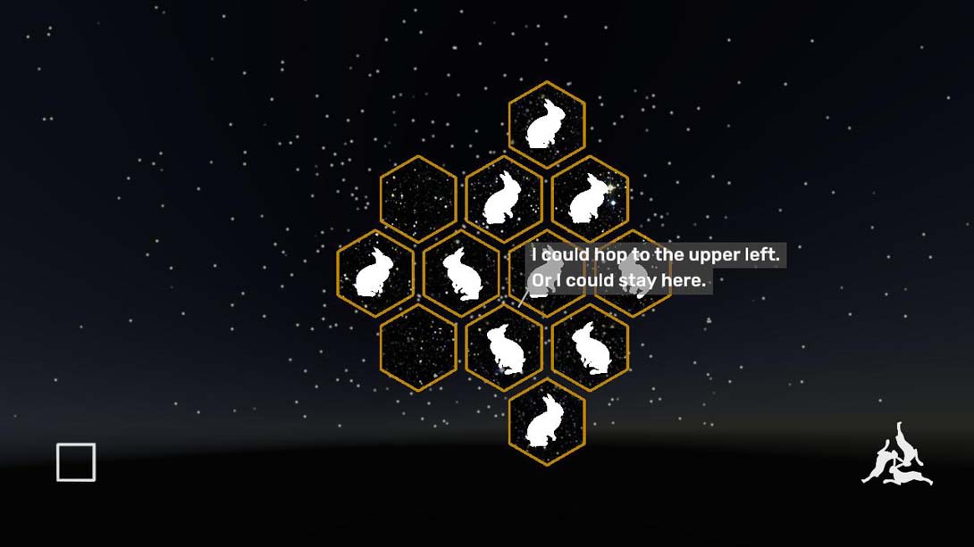 你的兔子同伴今晚没有任何计划。它们都是关于观星和偶尔跳过彼此。谁是最后一个回家的?