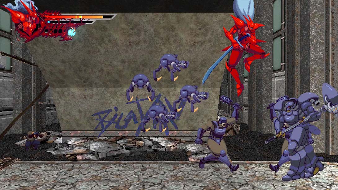 在游戏中,玩家需使用快速的剑术、爆炸性的武器和各类连击来对抗肉身与金属组成的军队,除了战斗外,玩家也能通过训练室磨练角色动作,将一个个攻击动作练成毁灭性的连招。
