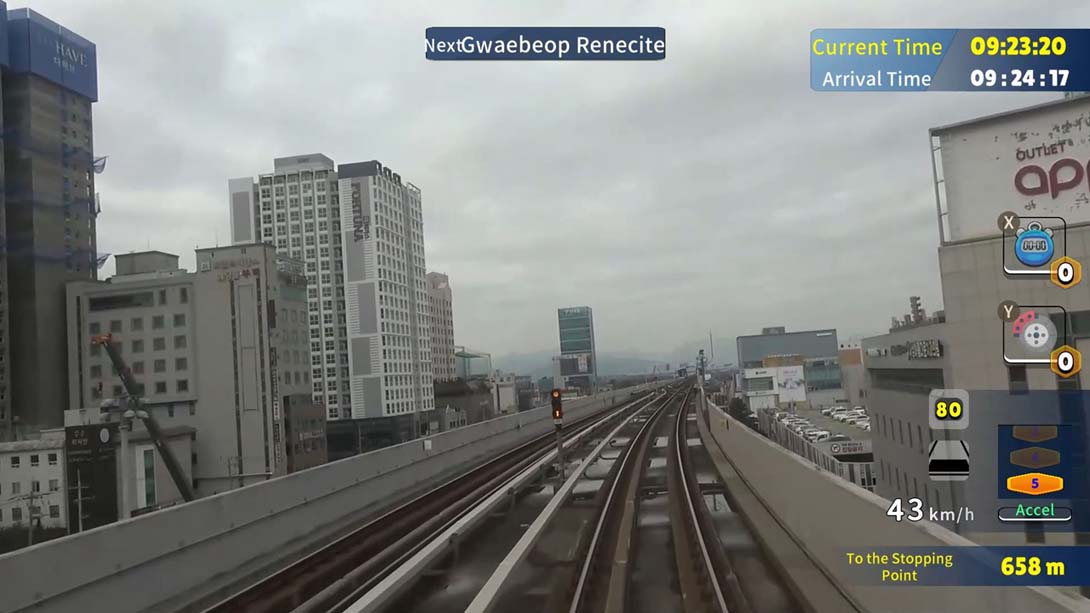 享受火车驾驶体验和韩国釜山地区的外部风景。