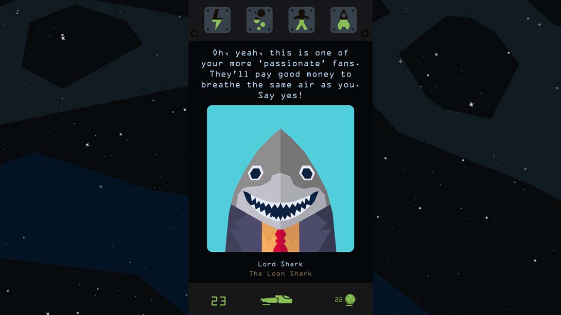 作为一支跨星系的独立摇滚乐队,你将从一个星球旅行到另一个星球,在追求名声和财富的过程中举办一场又一场的演出。在银河系的本地(和非本地)俱乐部玩,沿途招募外星乐队成员,在宇宙中摇滚!但在这次星际之旅中,一定要管理好飞船的资源,管好船员,因为一个错误的决定可能会让你死在太空中!