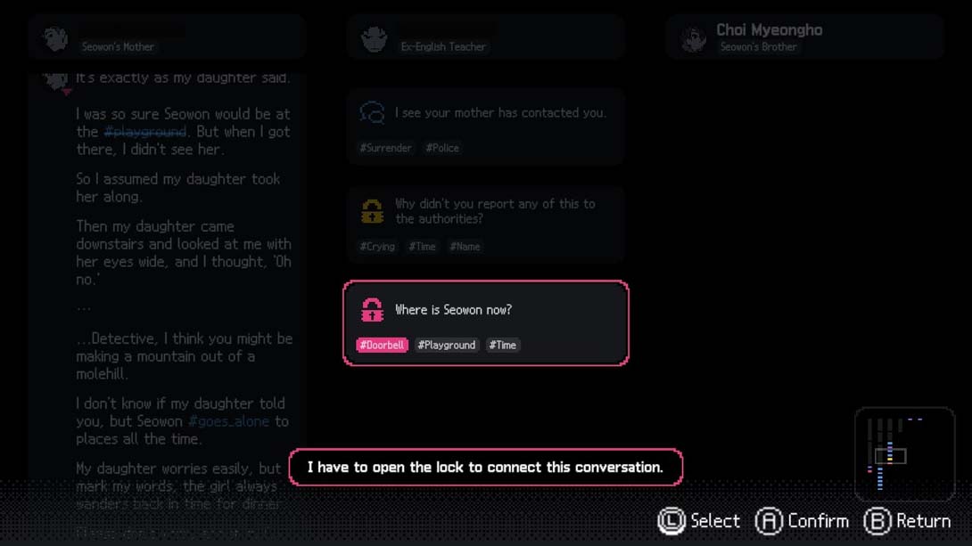 在2-3小时的游戏过程中,玩家将了解为什么Seowon的失踪是全京唯一未解决的案件。