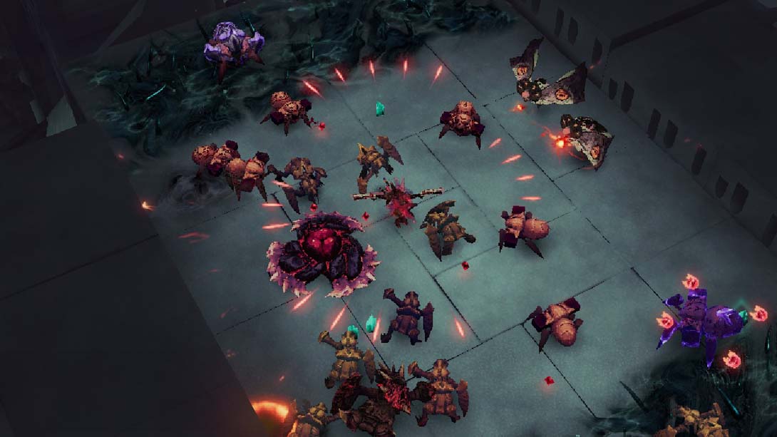 《射戮骑士》以简约修饰的美术风格和复古的画面,致敬90年代沉浸在霓虹氛围中的街机和射击游戏。在五个亲手设计、苛刻严峻的诡异惊悚角斗场内,《射戮骑士》将凭借低像素粗野主义的建筑风格,让你在坠入深渊时,也能尽情欣赏周围的可怖虚幻颓景。