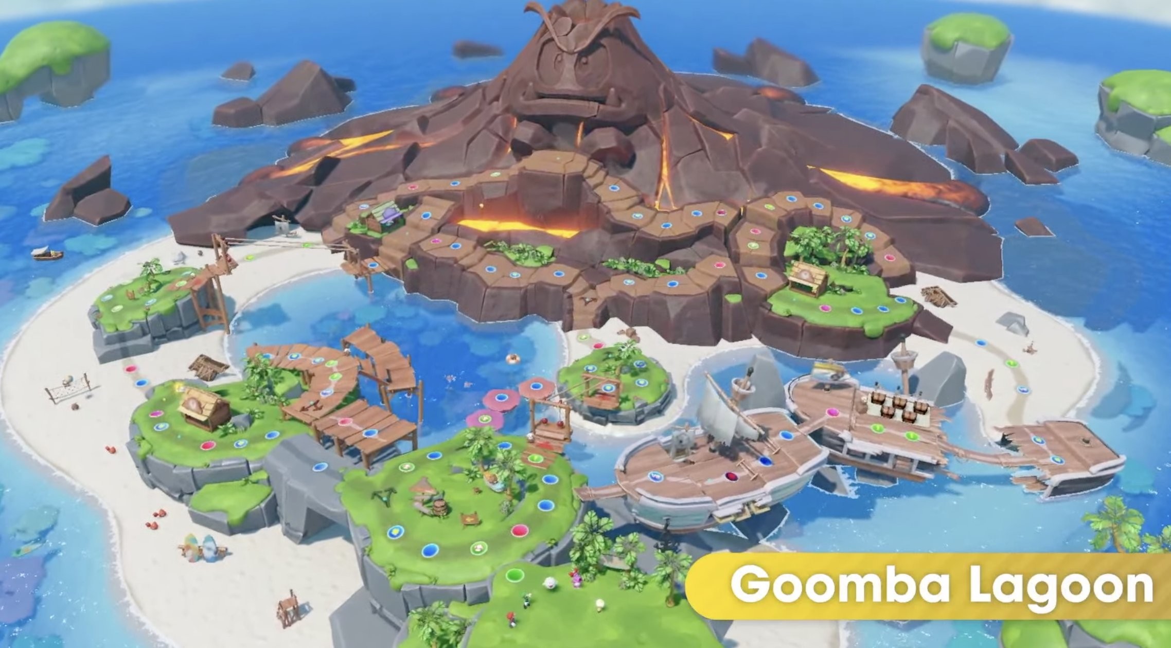 在Goomba Lagoon随水流而动,在Rainbow Galleria购物中心寻找星星,或者重温西部乐园和马里奥彩虹城堡的经典。有22个可玩的角色,包括新来者Pauline和Ninji,有适合各种派对的东西!