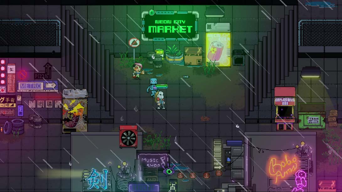 《霓虹城市骑手》是由Mecha Studios制作的一款像素风格的赛博朋克风格动作冒险游戏。游戏背景设定在一个科技高度发达但是却十分腐败的城市,你要寻找任何能帮上你忙的物品,并集结志同道合的同伴,团结这座城市的人们,与邪恶的帮派死磕到底。