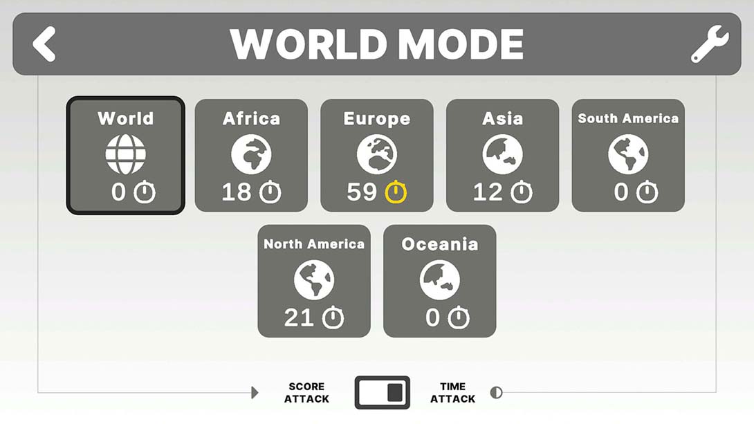 如果你对生命模式感到厌倦,你可以通过选择时间游戏的设置来提高肾上腺素水平。比赛分为世界、欧洲、亚洲、南美、北美、澳大利亚和大洋洲等地区。