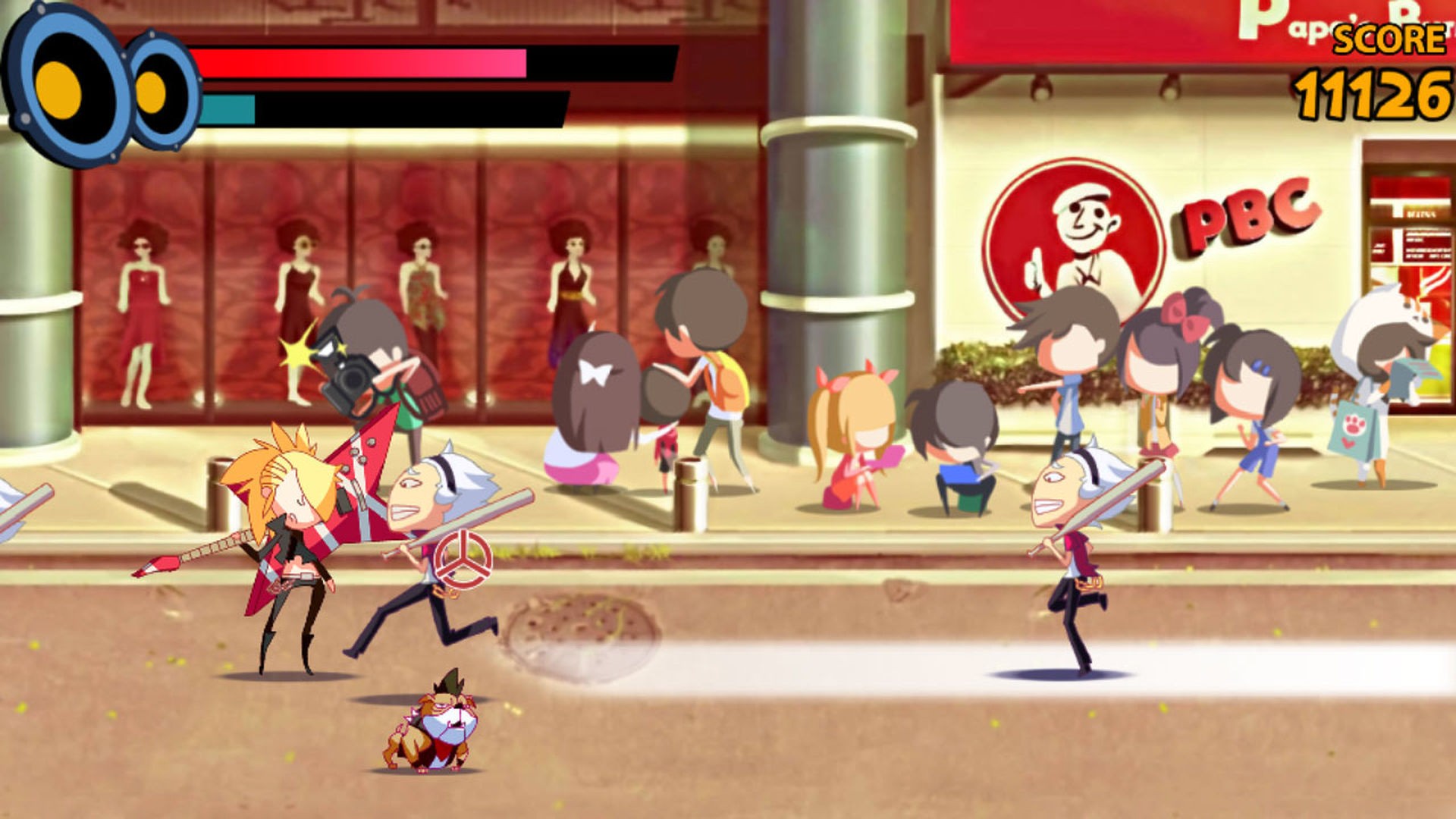 游戏中,玩家需要配合音乐和速度,打倒各种变态混球并获得胜利,操作简单爽快,效果也十分华丽