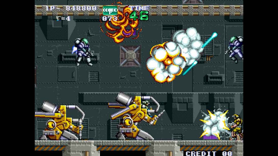 “枪力”是1991年在街机上发售的横向卷轴动作射击游戏。玩家将扮演士兵,使用机关枪、火箭筒、火焰发射器等各种武器与敌人战斗前进。另外,也可以乘坐在关卡途中登场的战车、直升机、机器人等交通工具和机械进行攻击。像这样用多种多样的攻击方法进行华丽的攻击就是“枪力”的最大魅力。本作也收录了1992年发售的消费版。