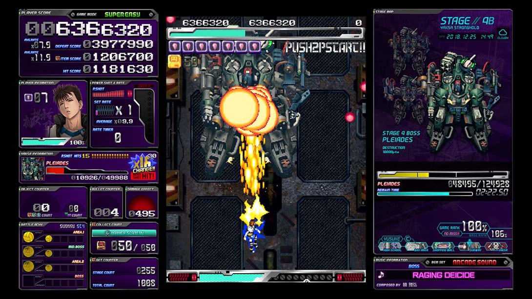 本作只要利用简单地按钮,就能操控机体在众多弹药中穿梭,并加以反击。游戏中可以使用地主要武器有:广范围进攻地“火神机炮”、单点火力集中地“雷射”、任意弯曲扫射地“质子雷射”三种,同时还能挑选“核子飞弹”、“导向飞弹”、“雷达飞弹”3个副武器,藉此达到截长补短地效果,才能在危机四伏地关卡里顺利击败敌对方、且安然无恙地生存到最后。