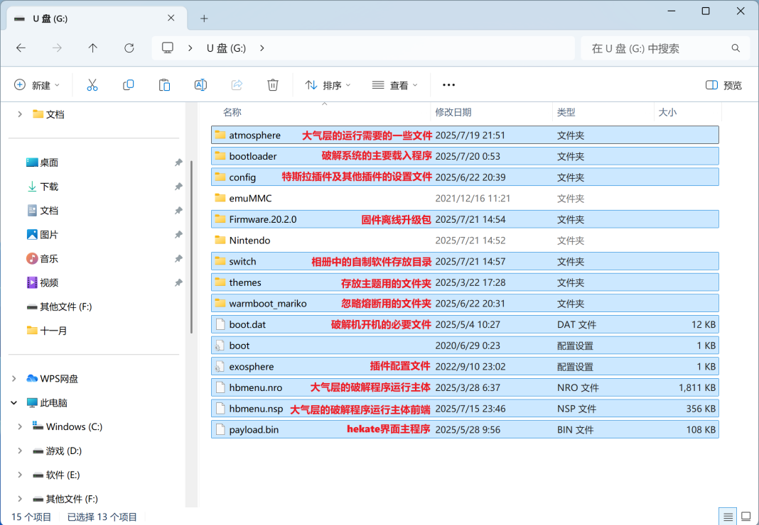 删除前请备份下原来的内存卡所有的大气层文件到电脑硬盘上,为了升级出错变砖后,好还原。游戏如果太大,可以把游戏删除点。重要存档或游戏,尝试备份:升级大气层系统防出错指南-备份内存卡数据到电脑硬盘 – switch游戏网switch520 (switchyx.com)