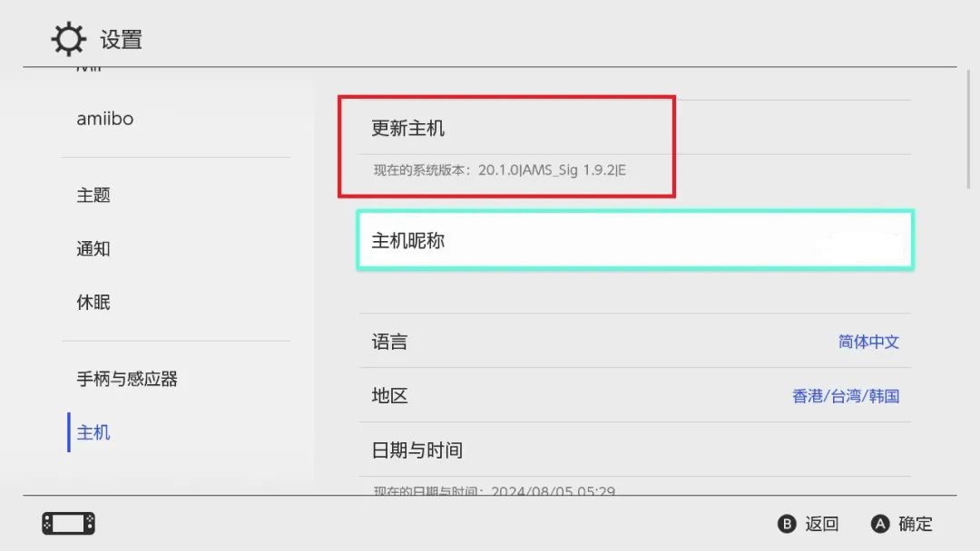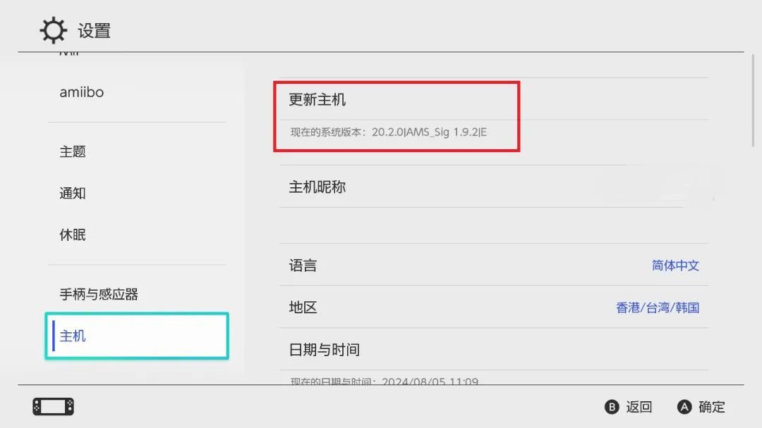 10.重启后,打开【设置-主机】确认大气层版本以及固件版本成功升级。