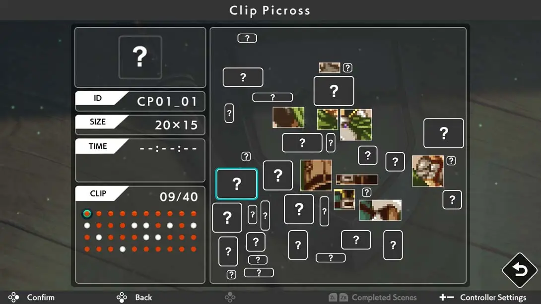 你不仅可以玩普通的Picross, Mega Picross,和彩色Picross从Picross S系列,但Clip Picross和Extra也重现著名的场景与大型谜题。