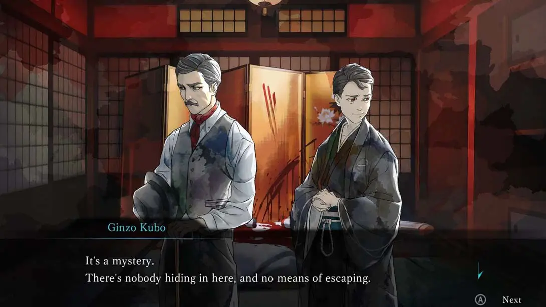 在听到这个事件后,侦探Kosuke Kindaichi到达现场,收集关于这个事件的证词,因为他寻找这个锁着的房间谋杀之谜的真相。然而……