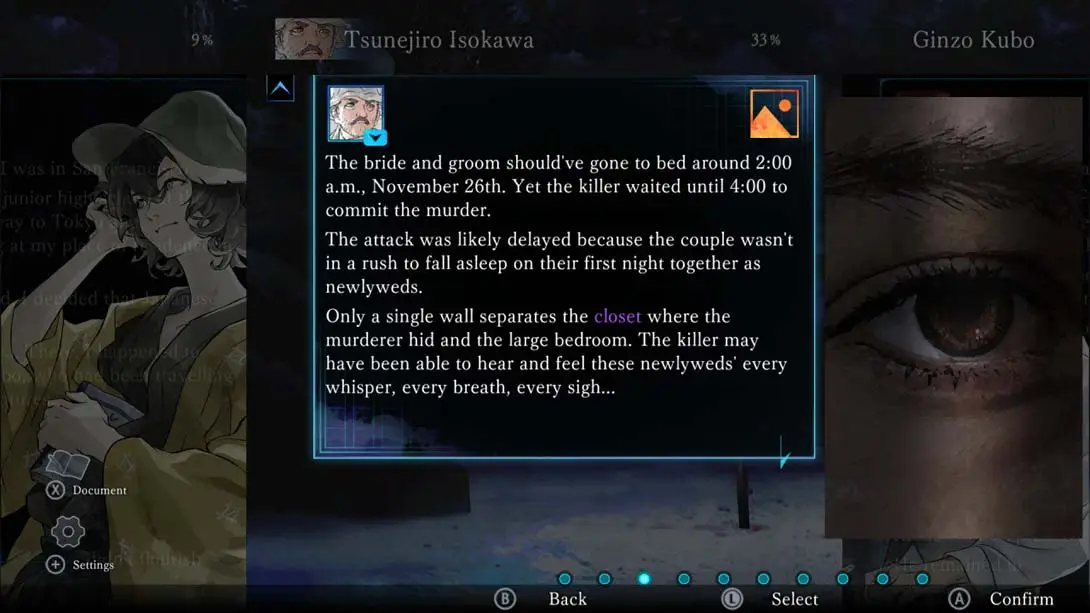 与来自冈山的侦探小说家一起,你的目标是将从村民和那些参与事件的人收集的证词拼凑在一起,揭开真相。