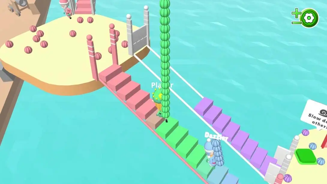 拿起你的砖块,开始建造,在你的对手铺设他们的第一块石头之前冲向终点线!收集你喜欢的颜色的砖块,建造通往下一关的桥梁。有多余的砖头吗?使用它们来扩展您的城堡并解锁古怪的新砖设计!
