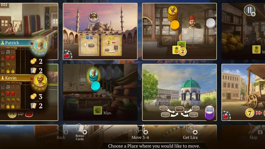 在伊斯坦布尔,你带领一群商人和他的四个助手穿过集市上的16个地点。在每个这样的位置,您可以执行特定的操作。然而,挑战在于,要采取行动,你必须将你的商人和助手转移到那里,然后让助手处理所有细节,而你则专注于更大的事情。如果你想再次使用该助手,你的商人必须返回该位置来接他。因此,你必须仔细地提前计划,以避免没有助手,从而无法做任何事情……