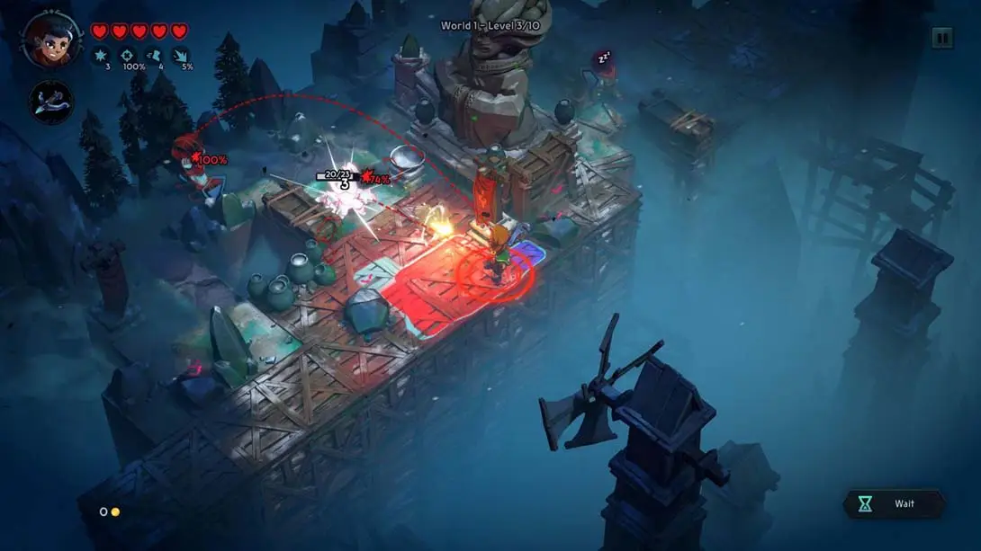 《Day of the Shell》是一款快节奏的轻Rogue战棋游戏,采用独特的“一键一回合”机制,玩家通过单次点击完成战术决策,兼具操作简易性与策略深度。游戏设定在诸神毁灭后的末世,玩家扮演孤胆怪物猎手,穿越洪水肆虐的破碎世界,挑战天意并平息神怒。