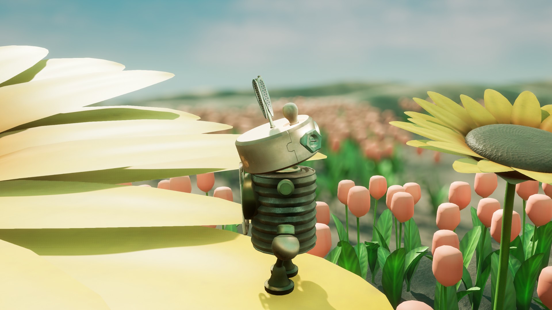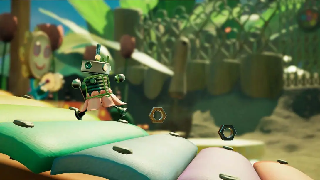 《Misc. A Tiny Tale》是一款微观视角3D平台冒险游戏,由独立工作室Tinyware Games开发,采用双角色协作解谜机制与沙盒式村庄重建玩法。游戏背景设定在人类后院的微型世界,玩家操控机器人Buddy和Bag Boy通过收集齿轮修复被毁家园,同时解开环境谜题。