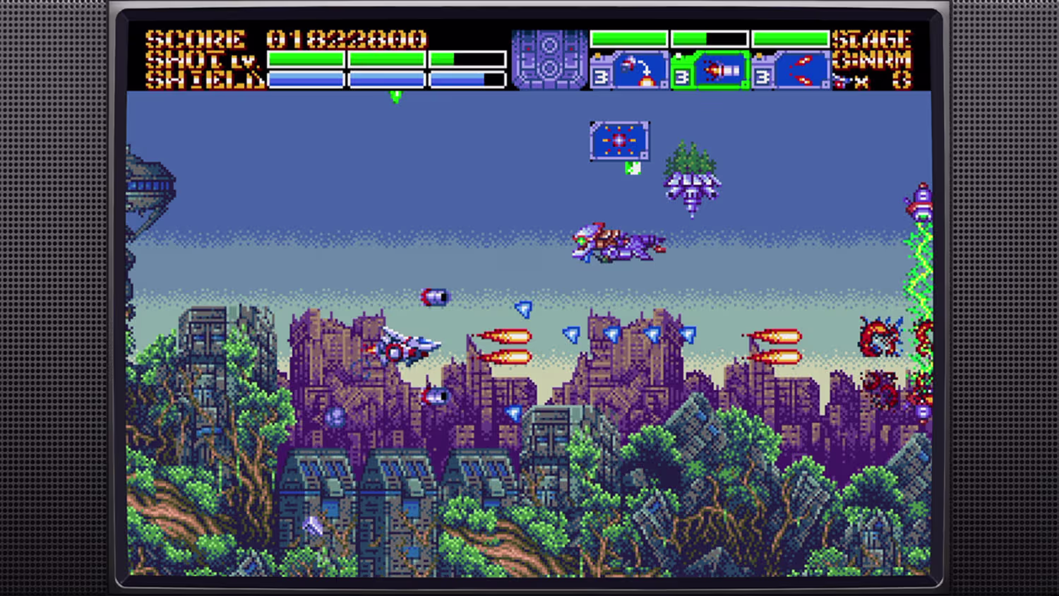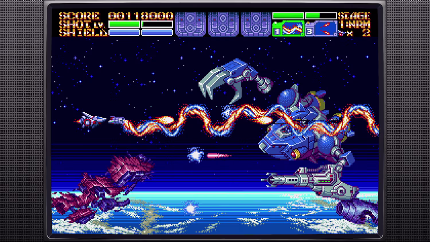 基于真实16位硬件设计,还原经典2D射击体验,画面与玩法致敬90年代黄金时期的STG游戏。