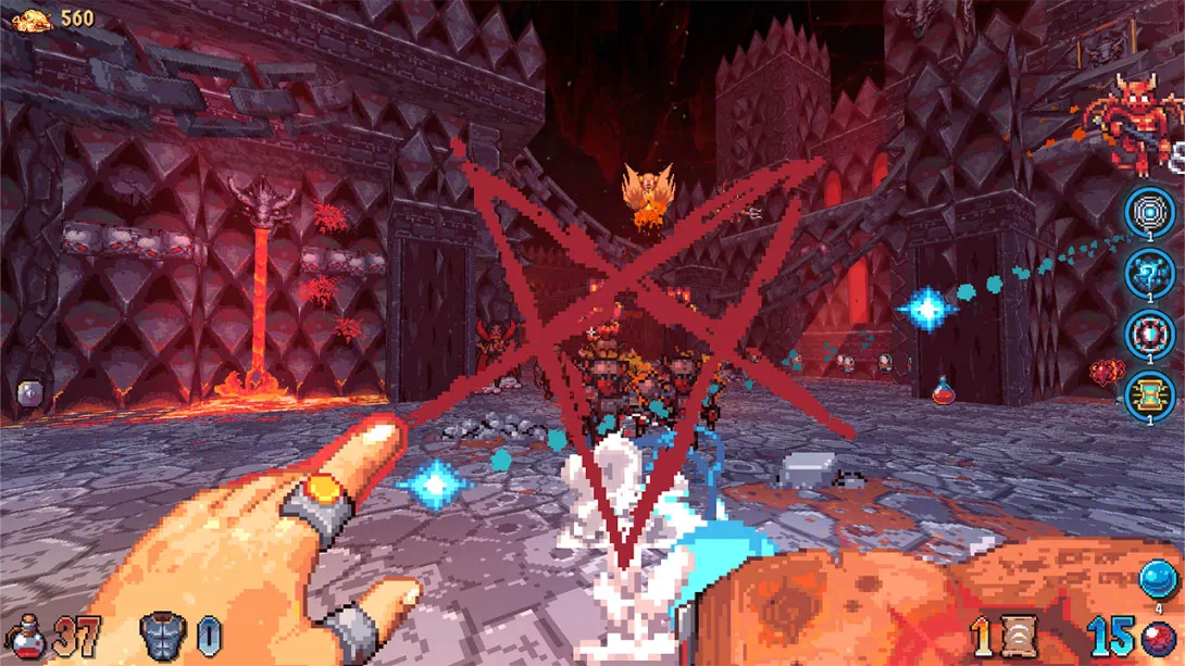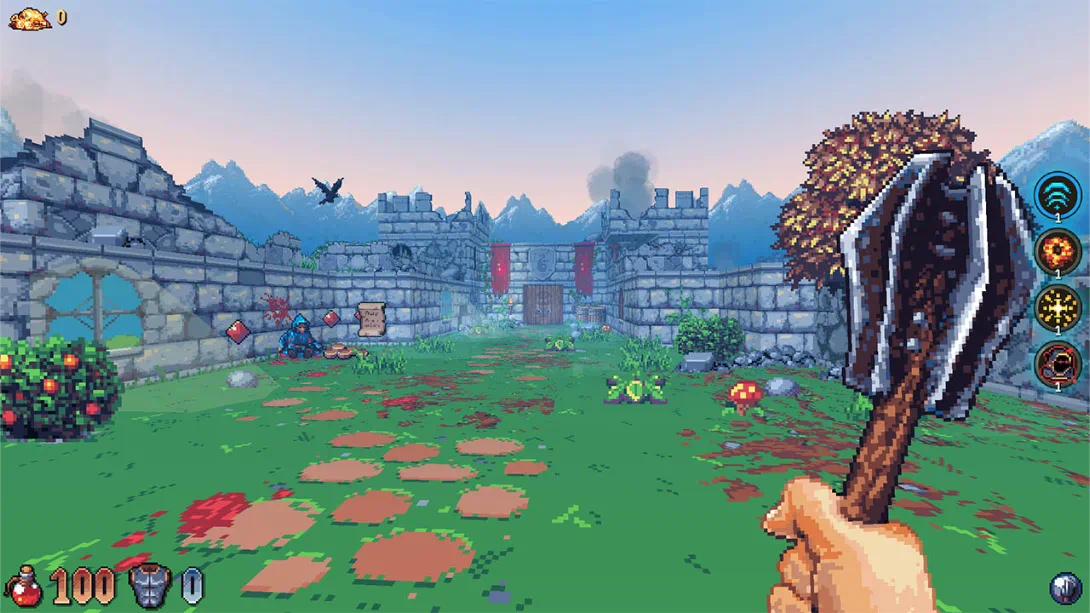 复古画面:采用像素化视觉效果,致敬《毁灭巫师》《异教徒》等经典作品。