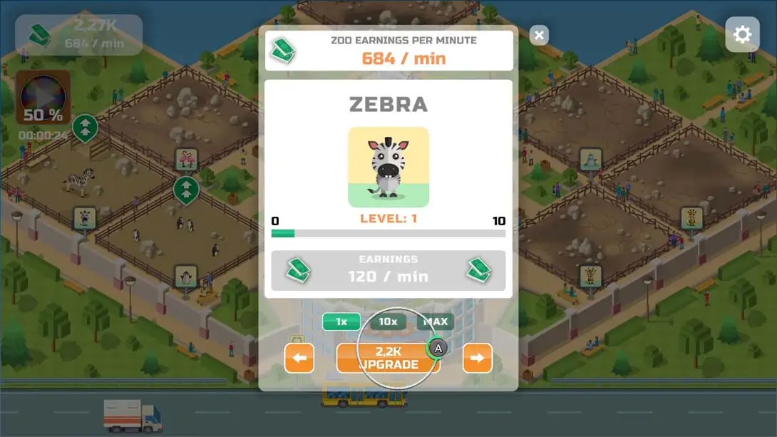 成为一个富有的投资者,恢复全国各地的动物园。你需要修复旧动物园并建造新动物园。