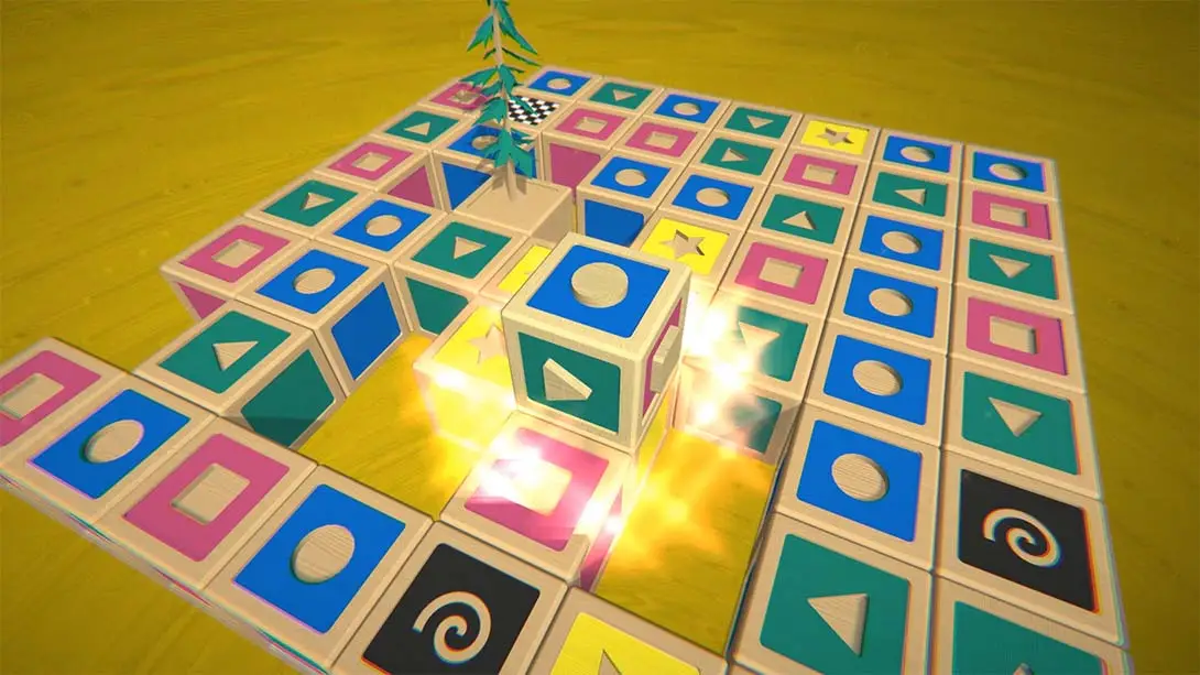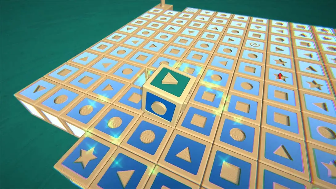 木块的每一面都有不同的形状,您只能滚动到具有相应形状和对齐方式的木块上。滚动到一个圆圈上可以让你旋转你的立方体,打开分支路径来帮助你实现你的目标。传送、通配符和掉落的方块都让混合变得有趣。