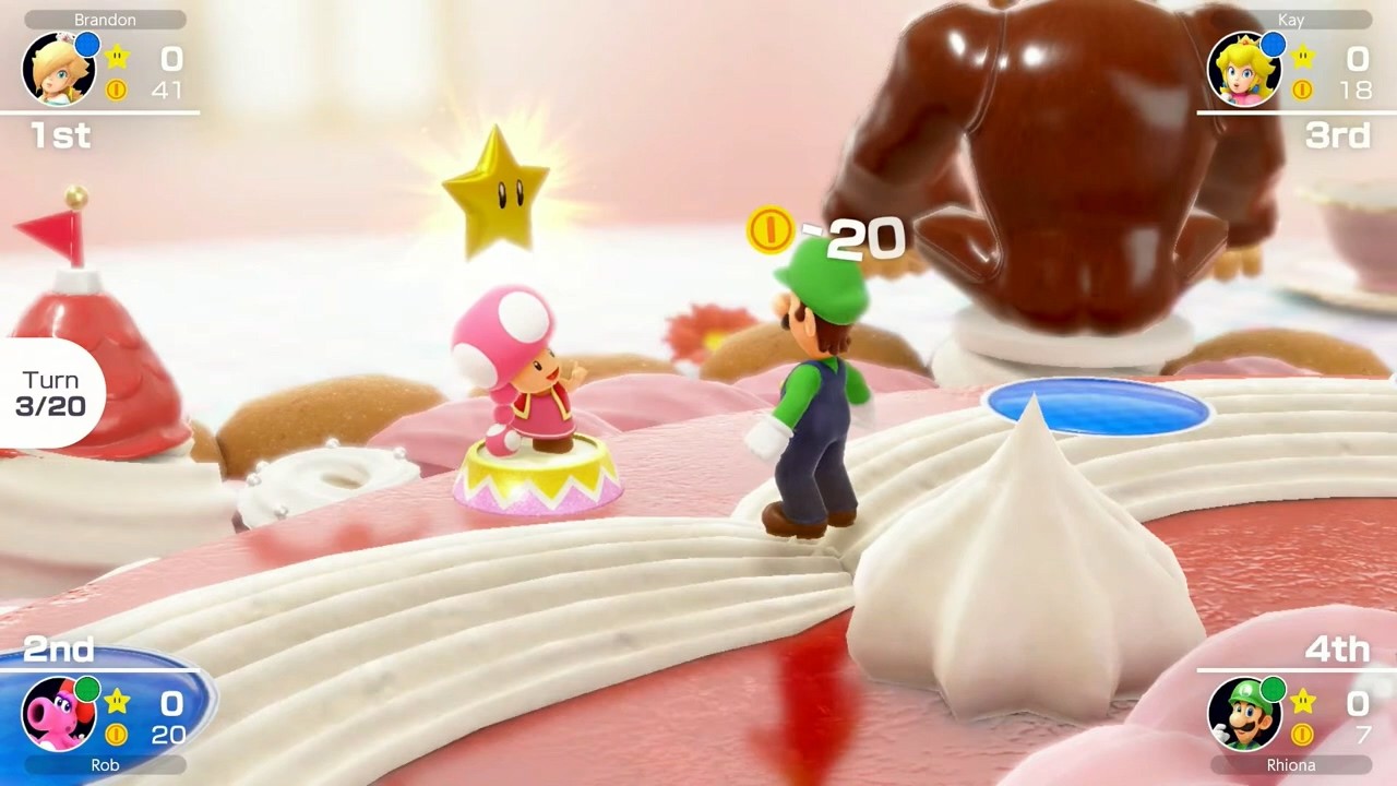 通过同系统**、本地无线**或在线*播放,随时随地举办派对。在全线比赛收集星星时,使用贴纸来赞美或纠缠其他玩家。所有模式都支持在线多人游戏,因此您可以与朋友一起玩一些小游戏或马拉松 30 回合比赛。来自世界各地的胜利同样甜蜜(偷星星也同样令人满意)。